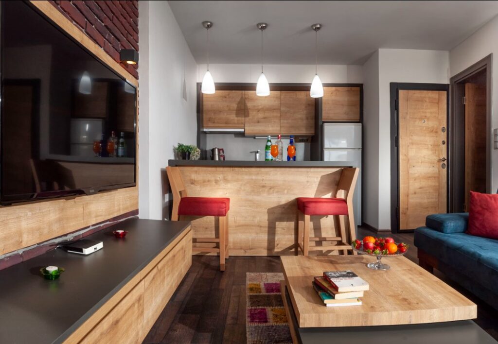 • Mutfakta birinci sınıf tezgah, mix batarya ve inox evye